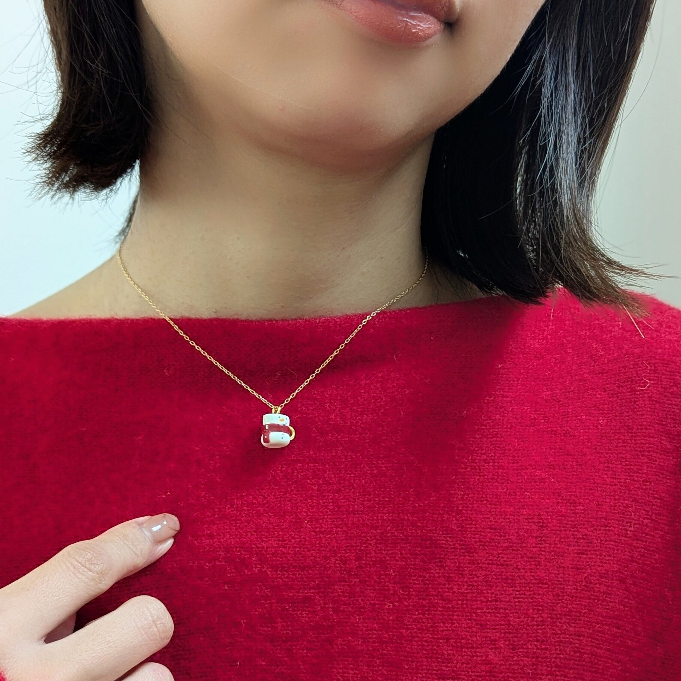 ネックレスのチェーンは38cmで、Vネックを着たときに綺麗に見えます。